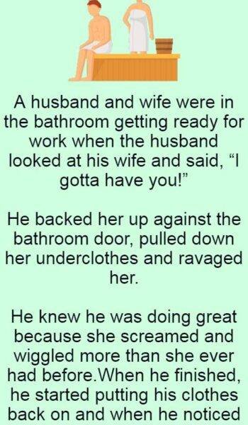 A husband and wife were in the bathroom getting ready for work when the husband looked at his wife and…